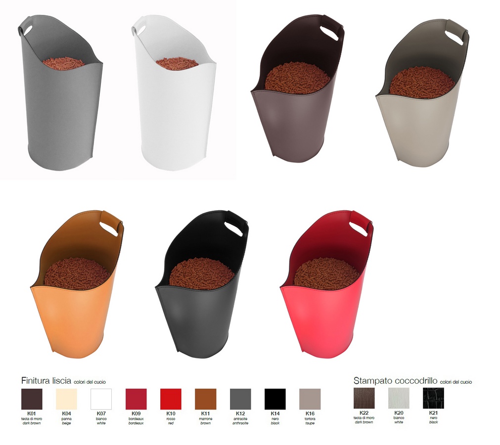 C’est le premier porte-pellets de la ligne Firestyle. Réalisé en cuir avec fond multicouche, équipé d’une manche ergonomique, il contient environ 15 kg de pellet. Son design a été conçu pour faciliter l’introduction du pellet dans le poêle ou la cheminée.
