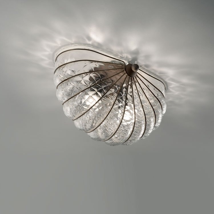 Lampe en verre soufflé fabriquée à la main, créée avec les techniques des anciens maîtres du verre de Murano.