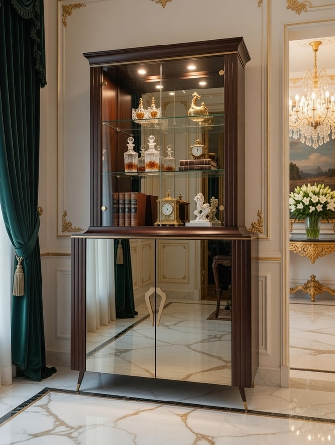 Vitrine de bar raffinée avec portes miroir
