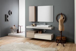 Meubles de salle de bains avec le système modulaire, des formes de base, différentes finitions, portes à fermeture magnétique