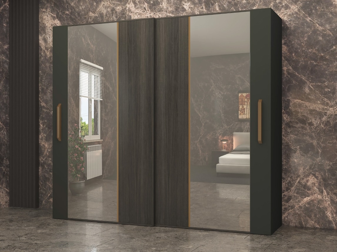 Le raffinement est la particularité de la zone nuit. La particularité, qui se construit grâce à la combinaison du placage teinté en gris et de la laque ton sur ton, en contraste avec les couleurs et les nuances claires des tissus recouvrant les meubles rembourrés. Le moment de détente trouve son expression la plus harmonieuse.