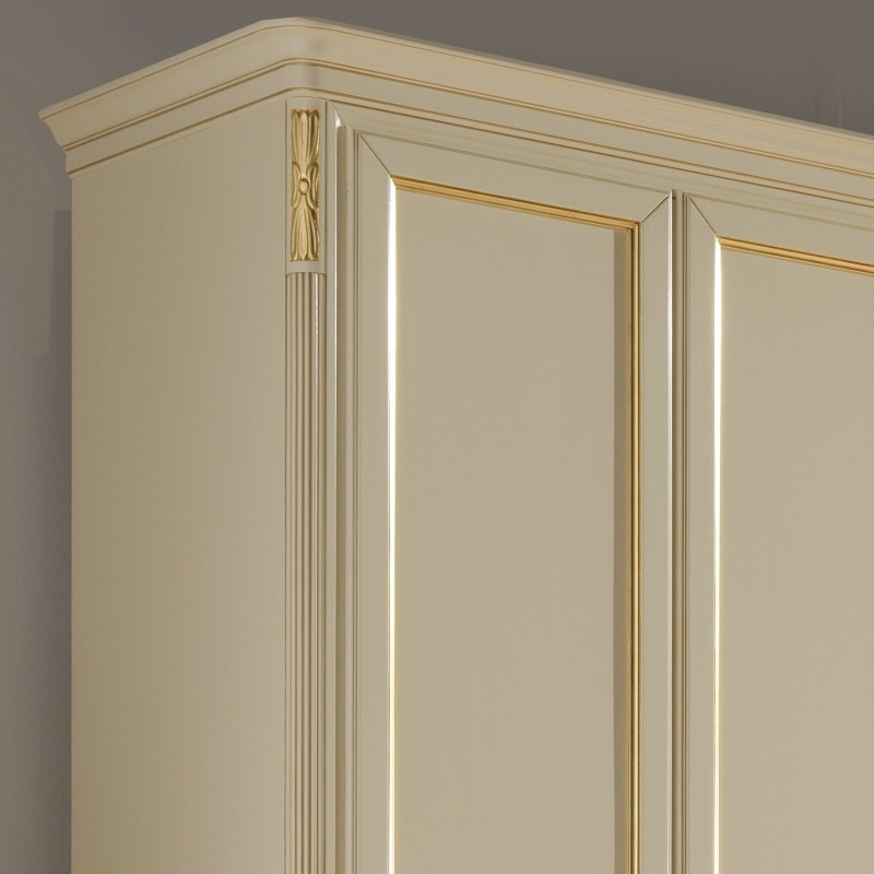 Demander prix Produits similairesArmoire à six portes battantes de style XVIIe siècle, composée de trois compartiments. Il présente des épaules latérales finement sculptées, des coins arrondis du socle et des cadres de chapeau. Le socle est façonné et donc surélevé du sol, ce qui donne à l'ensemble un aspect léger et élégant. Portes à double vitrage, panneaux lisses et serrure à clé classique.