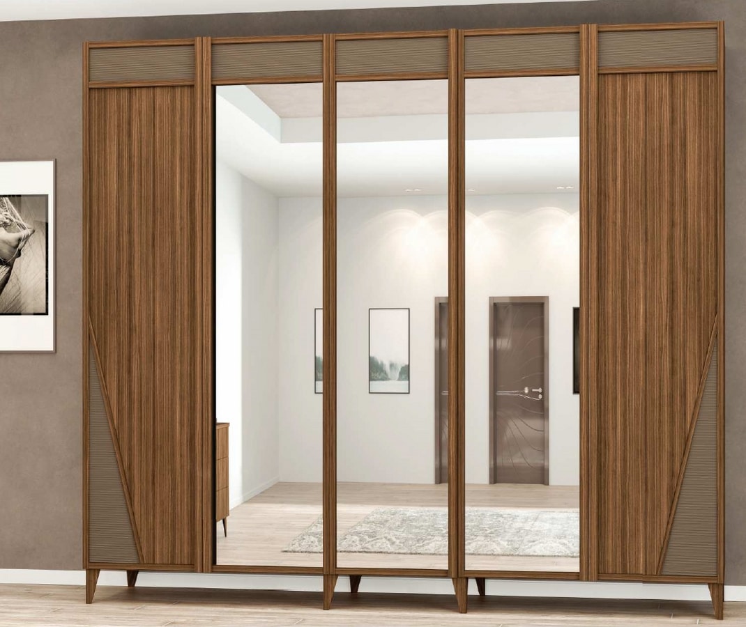 Demander prix Produits similairesArmoire avec 5 portes, avec des miroirs. Fabriqué en bois dans la finition en noyer de Canaletto.