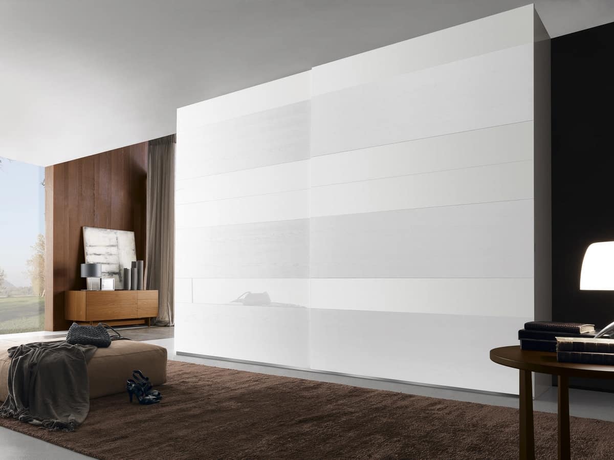 Programma L'armadio, est le système multifonctionnel Fimes pour les besoins quotidiens, avec différentes ouvertures de portes comme les feuilles, pliantes et coulissantes, avec différentes tailles et unités personnalisées disponibles avec de nombreuses finitions: laqué mat ou brillant, essences, Canaletto noyer, wengè, noyer naturel, miroir et verre.
