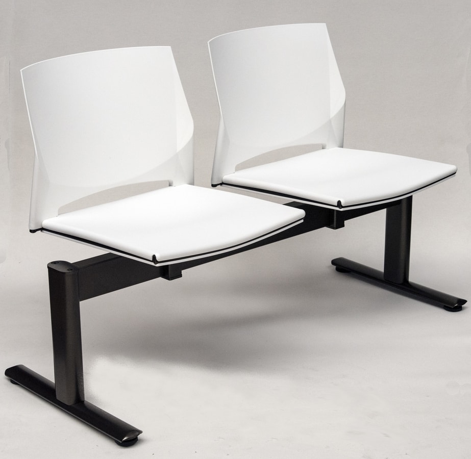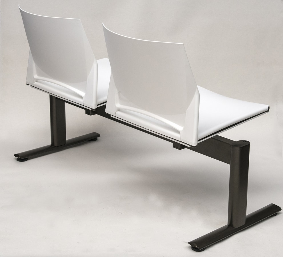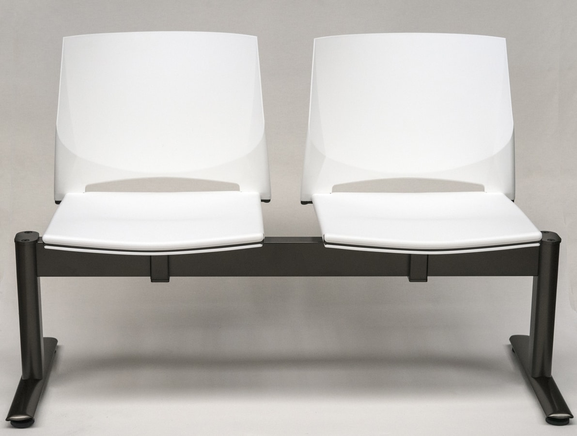 Sièges sur poutre avec siège et dossier en copolymère disponibles en plusieurs couleurs.