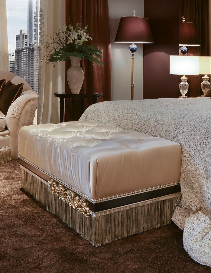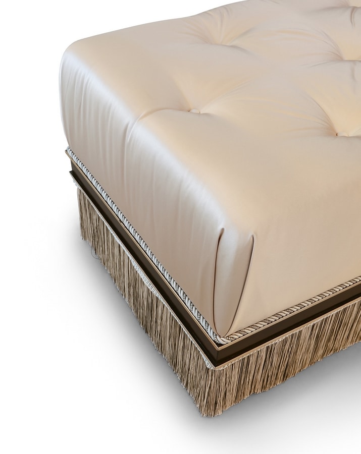 Le design avec des inserts sculptés dans la feuille d'argent de la Mecque caractérise l'originalité des formes; le rembourrage en velours et tissus italiens fins peut être personnalisé avec les différents revêtements et catalogue disponibles.