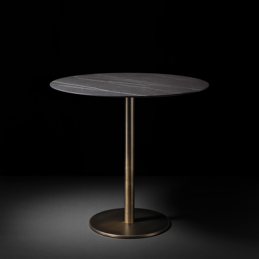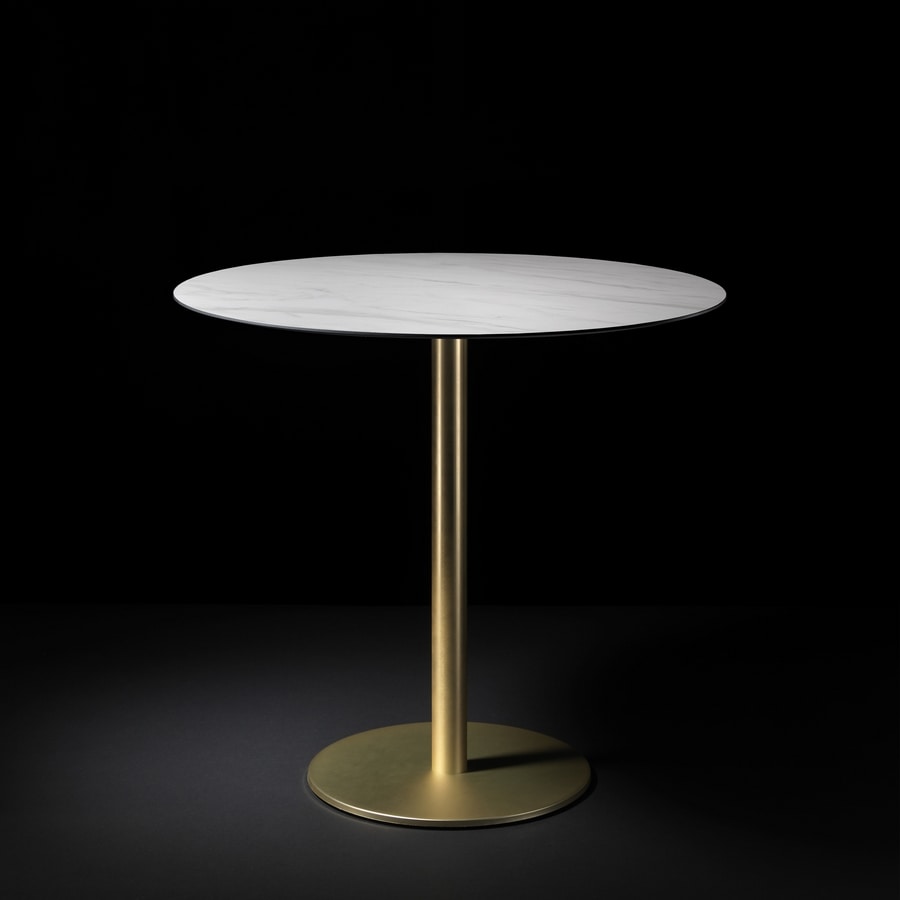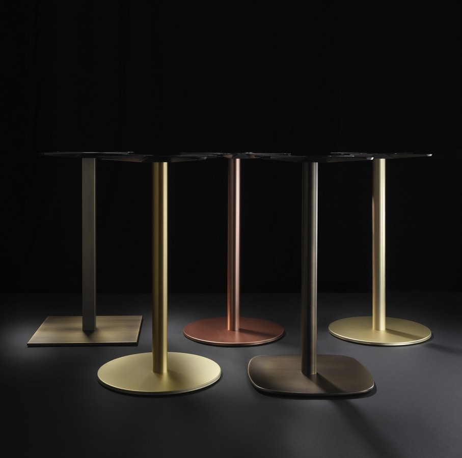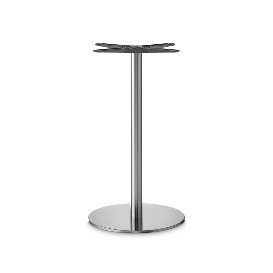 La base 530 comporte une colonne mince et une base plate, elle a été ainsi créée pour assortir le nouveau modèle minimal contemporain. La base 530 avec plateau rond et colonne est disponible en 3 hauteurs standard et peut être combinée avec des plateaux de différentes tailles et finitions.