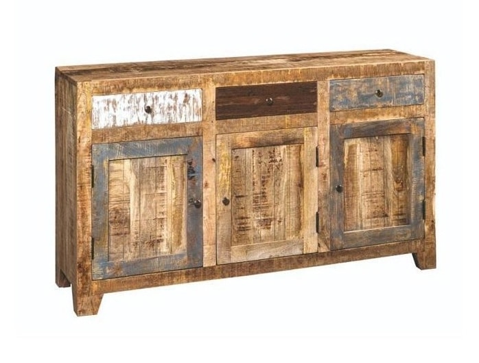 Buffet équipé de tiroirs et de portes. Le meuble est une croyance particulière qui prend forme du bois massif recyclé. Celui en question est un complément d'ameublement très fasciné, qui émerge pour sa variété de couleurs, qui peut être combinée avec de nombreuses pièces de la mer, des montagnes et des montagnes.