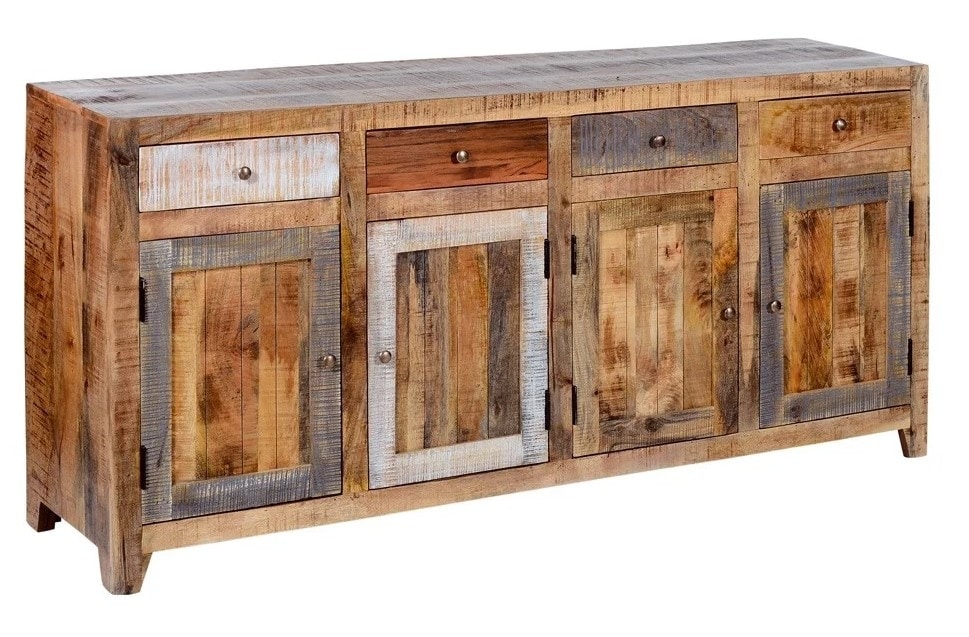 Buffet équipé de tiroirs et de portes. Le meuble est une croyance particulière qui prend forme du bois massif recyclé. Celui en question est un complément d'ameublement très fasciné, qui émerge pour sa variété de couleurs, qui peut être combinée avec de nombreuses pièces de la mer, des montagnes et des montagnes.