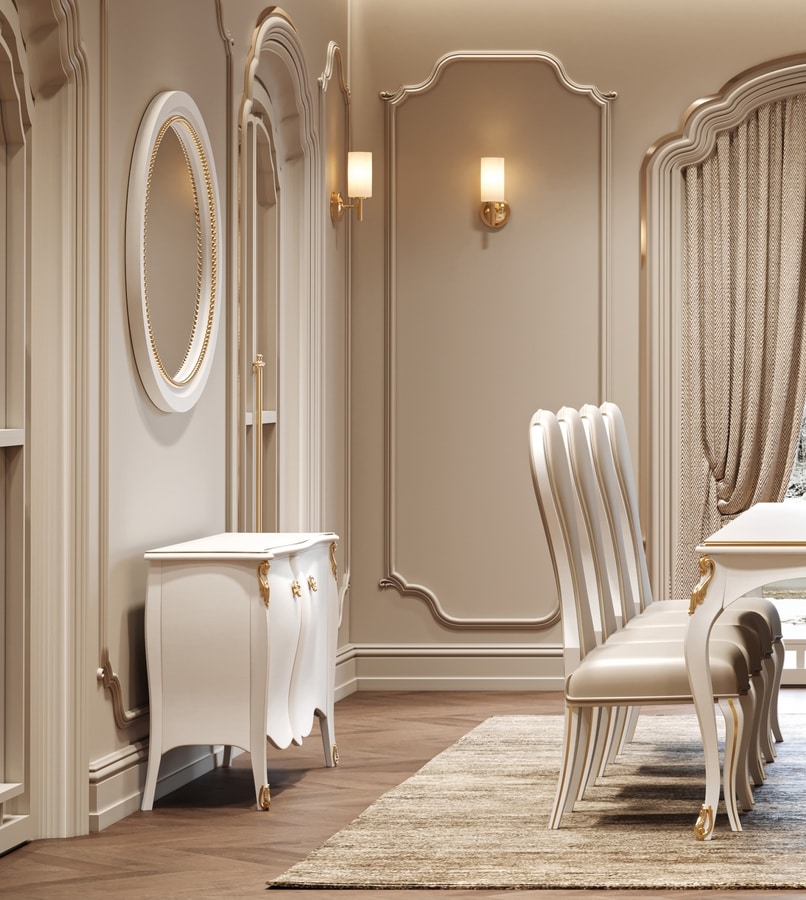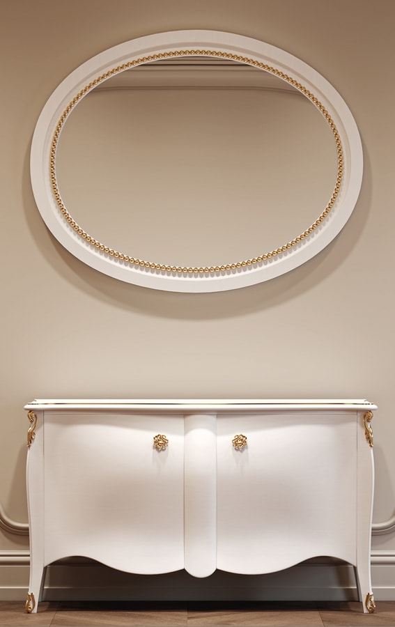 Buffet 2 portes, en bois laqué, avec décorations finition dorée.