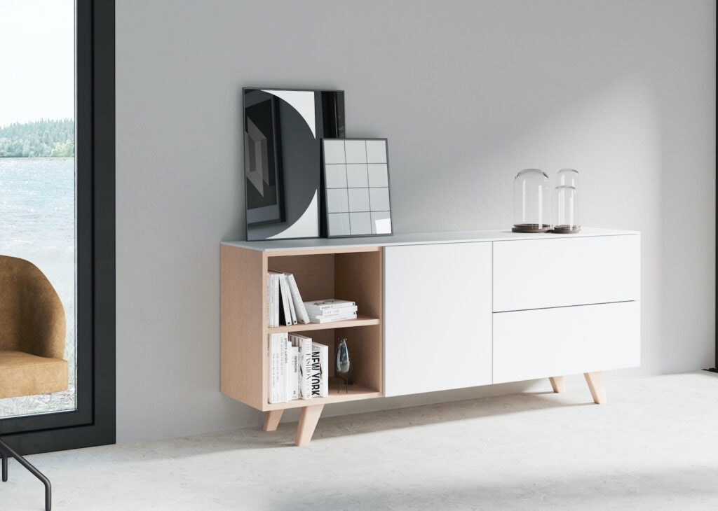 Demander prix Produits similairesBuffet modulable avec plateau en bois (chêne ou noyer), fenix, hpl ou céramique et pied au choix (de 5 à 17 cm) en bois ou métal. Porte avec ouverture push-pull et tiroirs avec système Blumotion amorti. Possibilité de portes et tiroirs en fenix ou hpl.