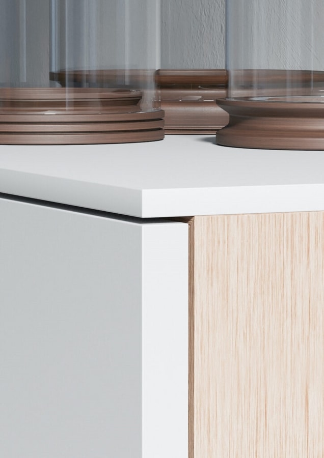 La créativité et les limites sont constamment sous tension, dans l’intention de faire naître des projets toujours nouveaux. Une structure de départ, un conteneur à remplir avec différents éléments : des portes, des tiroirs, des niches, contribuant à caractériser le produit au niveau esthétique et fonctionnel.