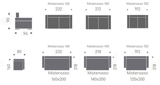 Canapé-lit idéal pour le quotidien. Lit à lattes. Matelas d'une hauteur de 14 ou 18 cm, densité 50kg. Design contemporain.