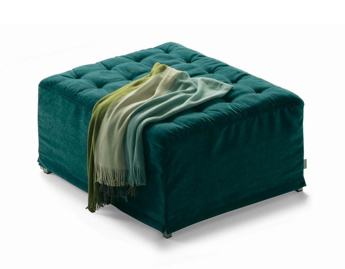 Le pouf convertible Dorsey se distingue pour son rappel au style art-deco et pour son particulier revêtement déhoussable en tissu matelassé. L'ouverture frontale et le pratique pliage du matelas en mousse polyuréthanne haute résilience de 11 cm d’épaisseur évitent de s’assoir sur le coté couchage.