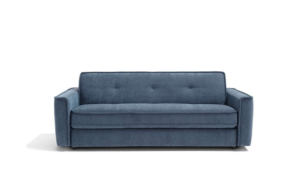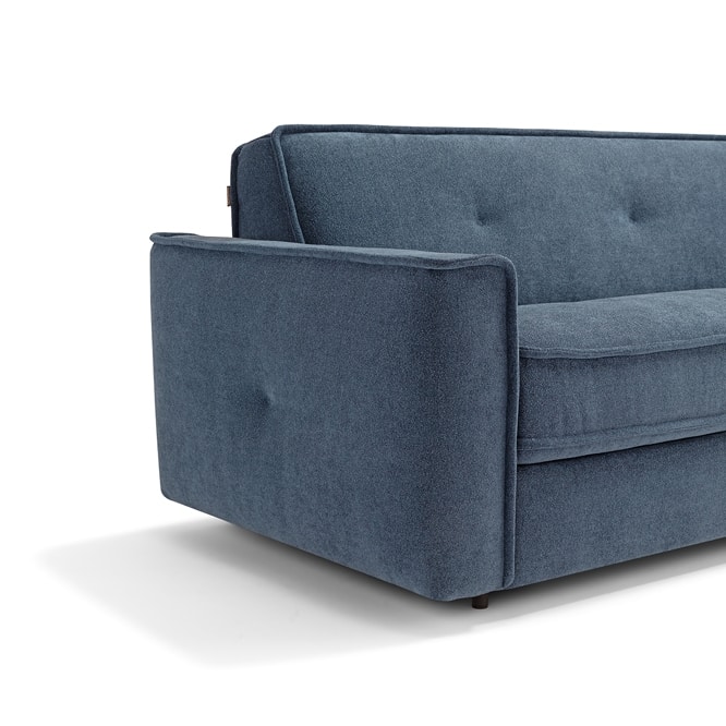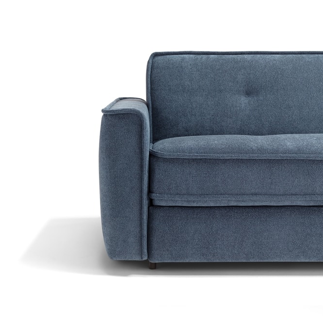 Demander prix Produits similairesElodie, Un Canapé trois places pour salon, moderne et polyvalent avec un coussin d’assise simple, révèle une seconde âme inattendue en lit double. Indispensable dans la conception et synthèse d’un jeu de volumes équilibré, ce modèle exprime le raffinement tout en se mettant au service du repos, qu’il s’agisse d’une petite pause détente dans la journée ou si vous recherchez un sommeil réparateur. Une expression du pur savoir-faire Made in Italy est le soin vestimentaire que nous avons consacré à chaque détail : du revêtement amovible en tissu bouclé couleur aviation, avec des coutures sur l’assise et sur la surface latérale des accoudoirs, jusqu’aux coutures pincées qui définissent les volumes avec du caractère. Comme dans tous les modèles de la ligne Sartoris, également pour Elodie – simplement en tirant sur la lanière en cuir intégrée – il est possible d’activer le mécanisme de pliage intégré en quelques instants : il sera ainsi possible de basculer, en un instant et en complète sécurité, de la configuration du canapé à ce lit.