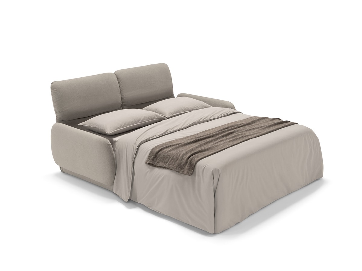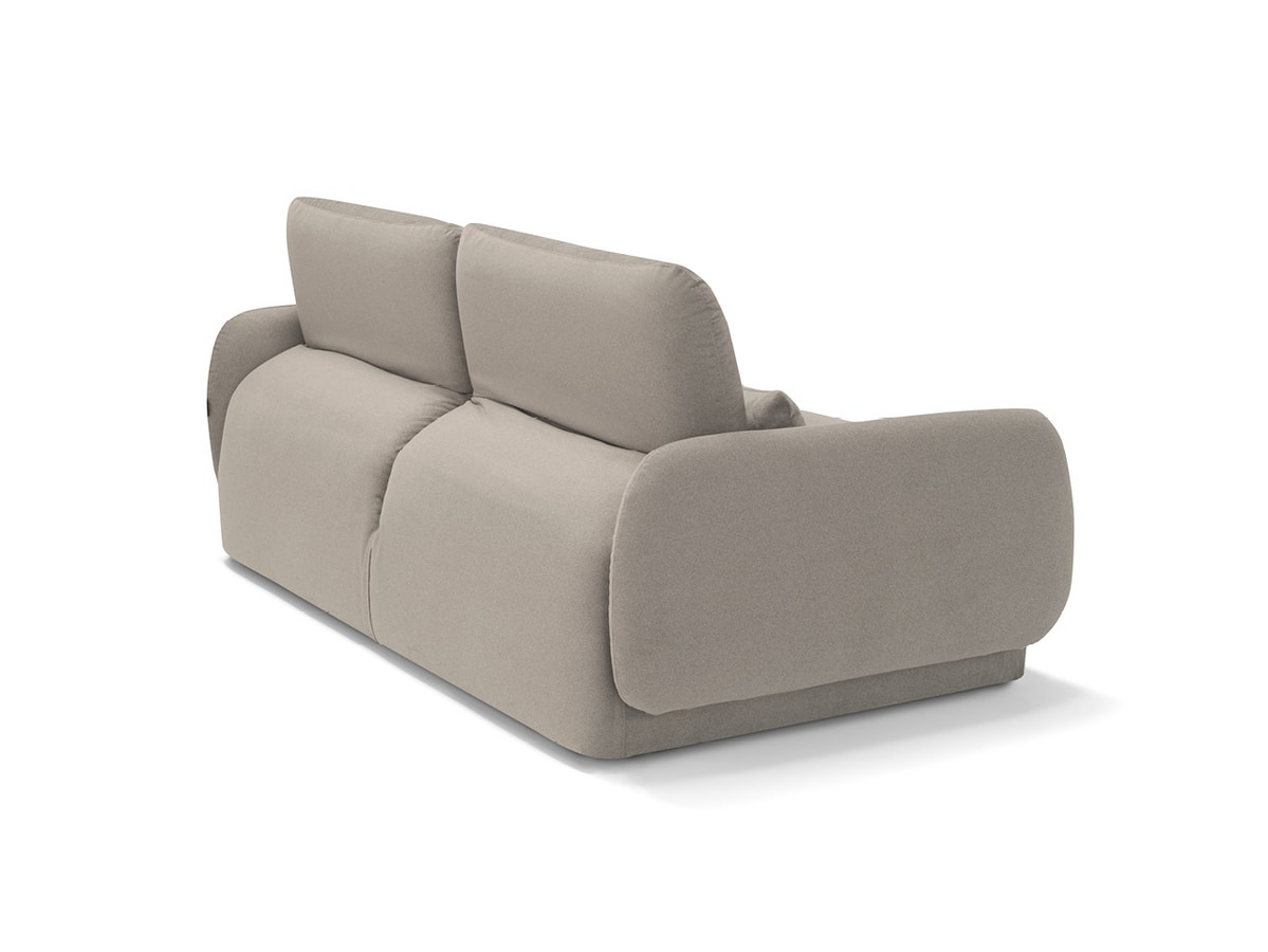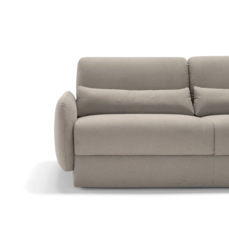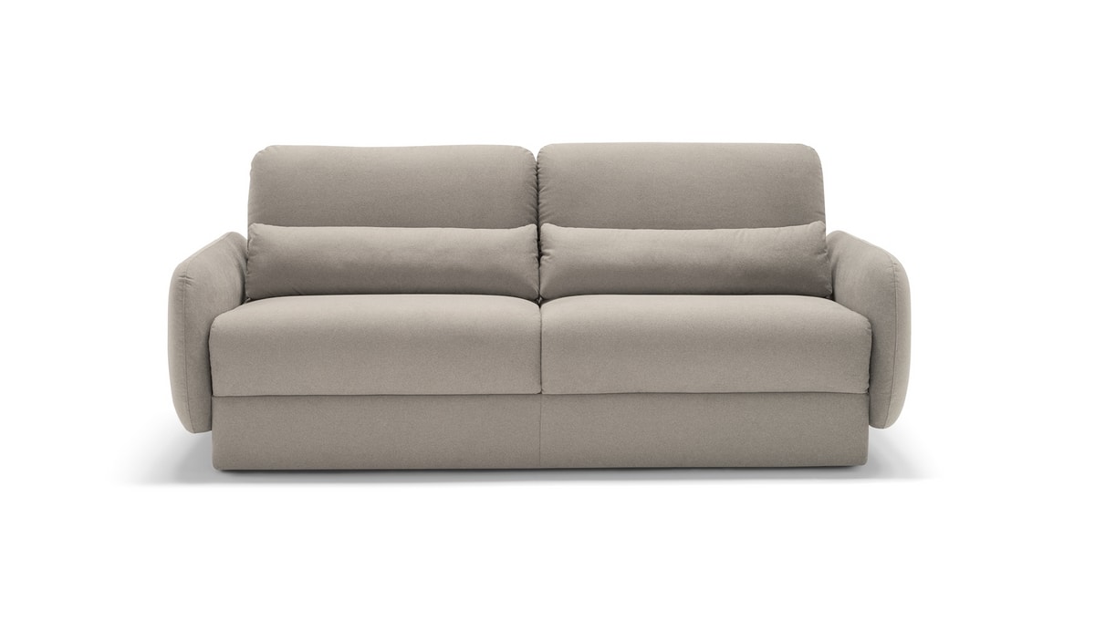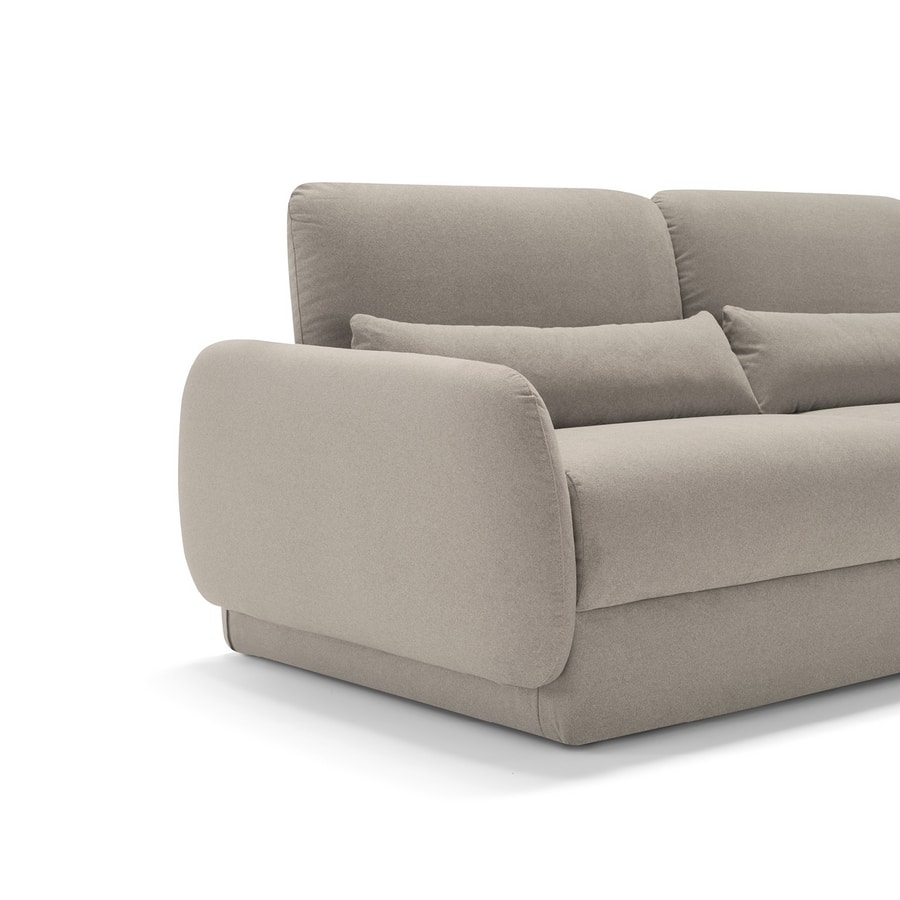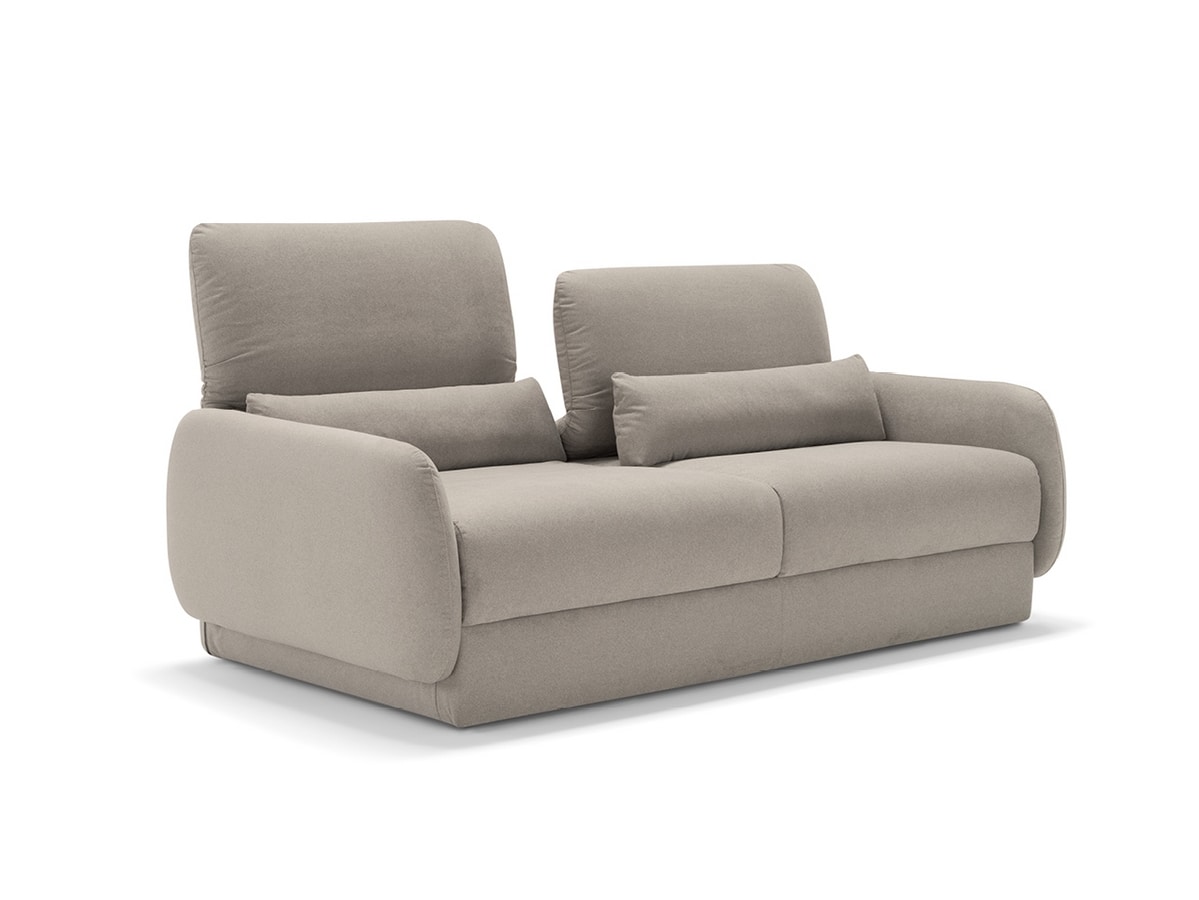 Canapé lit aux formes arrondies. Equipé d'un appui-tête inclinable.