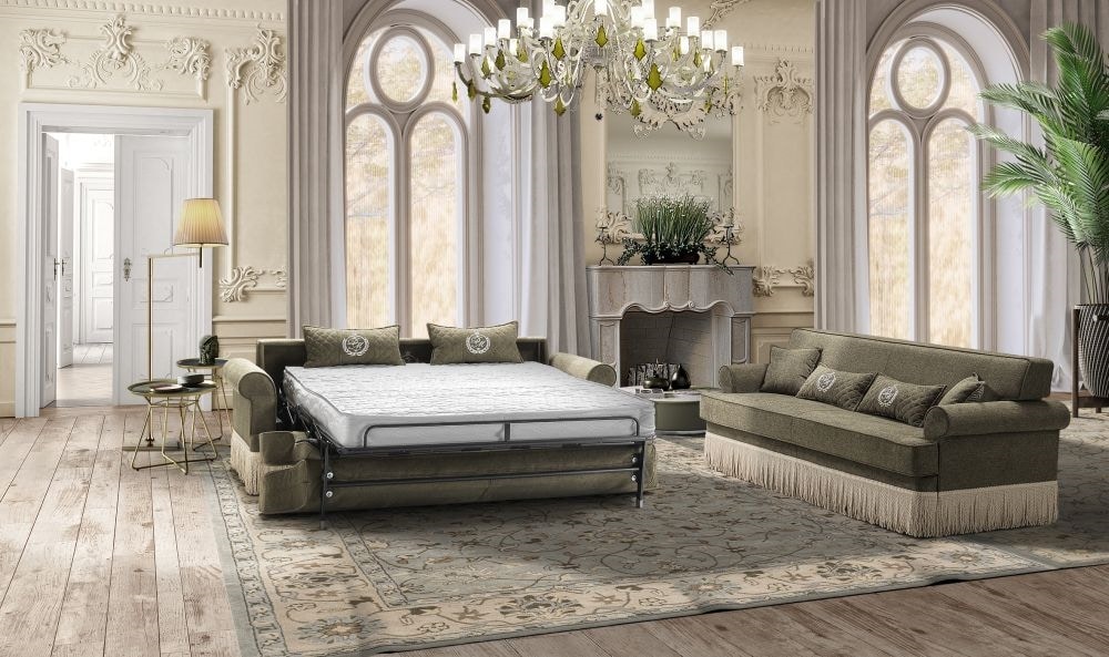 C'est un modèle qui va bien au-delà de l'esthétique, car il peut devenir un canapé-lit très confortable, grâce à un mécanisme intégré à la structure, qui permet de fermer à la fois le sommier et le matelas à l'intérieur du canapé.