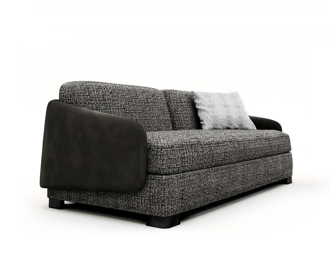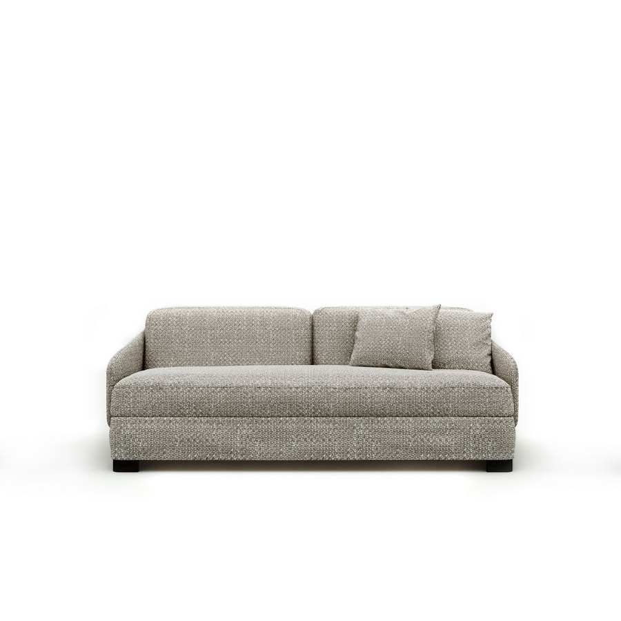 Vivien est un canapé-lit intégré du mécanisme Lampolet. Il est caractérisé par des lignes arrondies permettant au dossier de se prolonger en accoudoir. Ce canapé convertible peut être habillé de différents revêtements en combinant le cuir, le tissu et la microfibre. Les pieds sont en métal avec finition nickel noir. Vivien est facilement convertible par un simple mouvement en un confortable lit avec un matelas de 200 cm de longueur, en laissant en place les coussins d’assise et de dossier. Le revêtement déhoussable est lavable selon le choix du tissu. Vivien est un canapé lit démontable pour un transport plus pratique ; il est aussi disponible en version fixe.