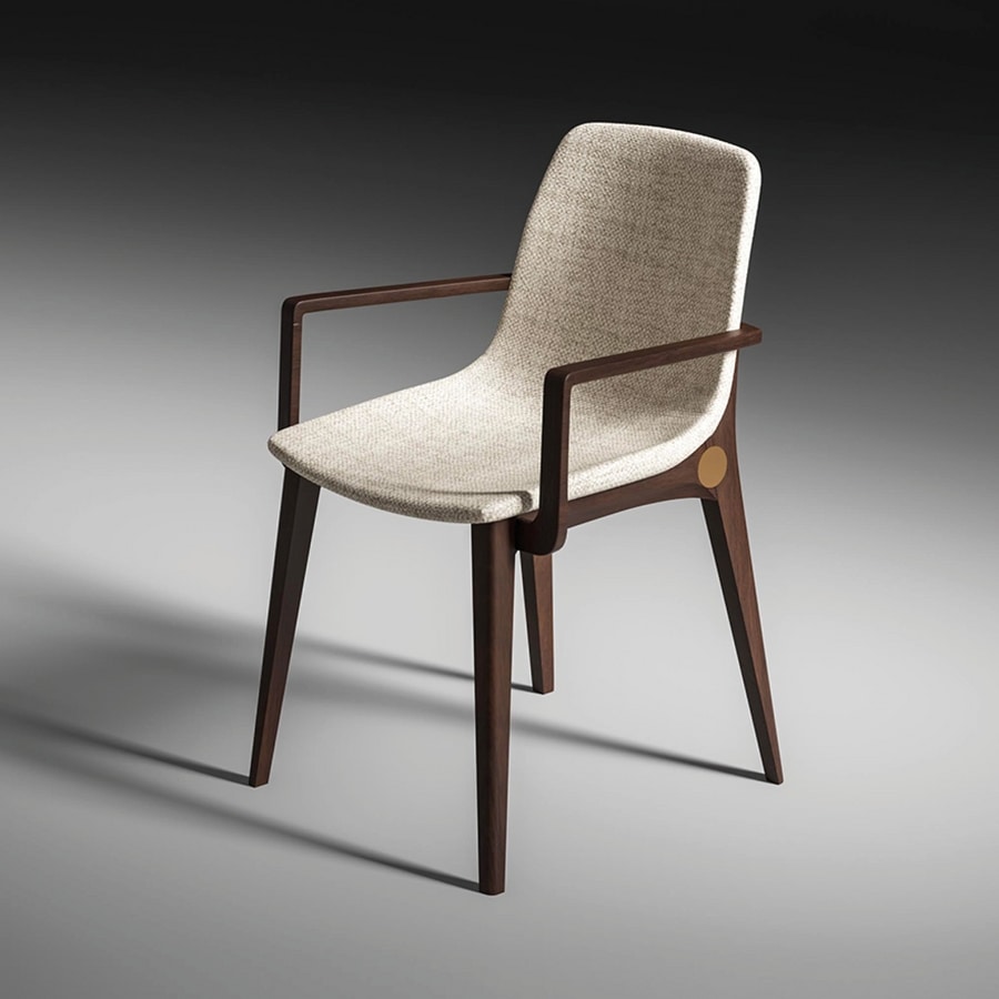 Chaise en bois avec accoudoirs, rembourrée
