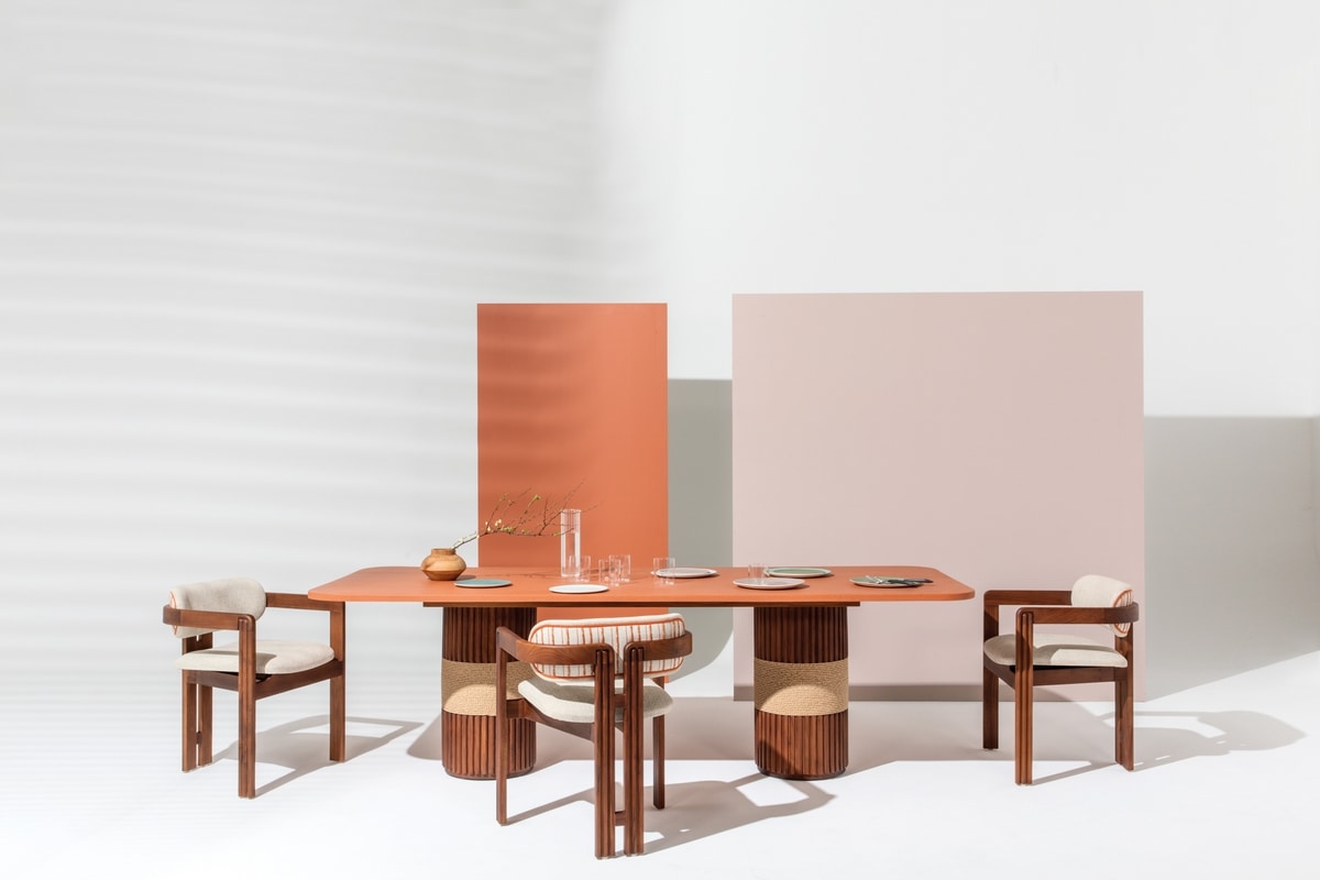 La collection Grissini est un mélange parfait de l'esthétique contemporaine et de l'artisanat italien. Cette série de meubles comprend des lignes épurées, des détails géométriques et une fabrication raffinée. La conception de la collection Grissini est inspirée par les formes linéaires allongées des grenaches Turin. Convient à la fois aux espaces résidentiels et contractuels, les meubles Grissini se fondent parfaitement dans les jardins, les terrasses et les environnements intérieurs. La structure est en bois de teck avec une finition d'huile et de cire. Les tables et les tables basses se distinguent par l'ajout de corde de jacinthe à eau naturelle à double torsion. Les couvertures de coussin sont en tissu en toile ECRU dans la version standard.