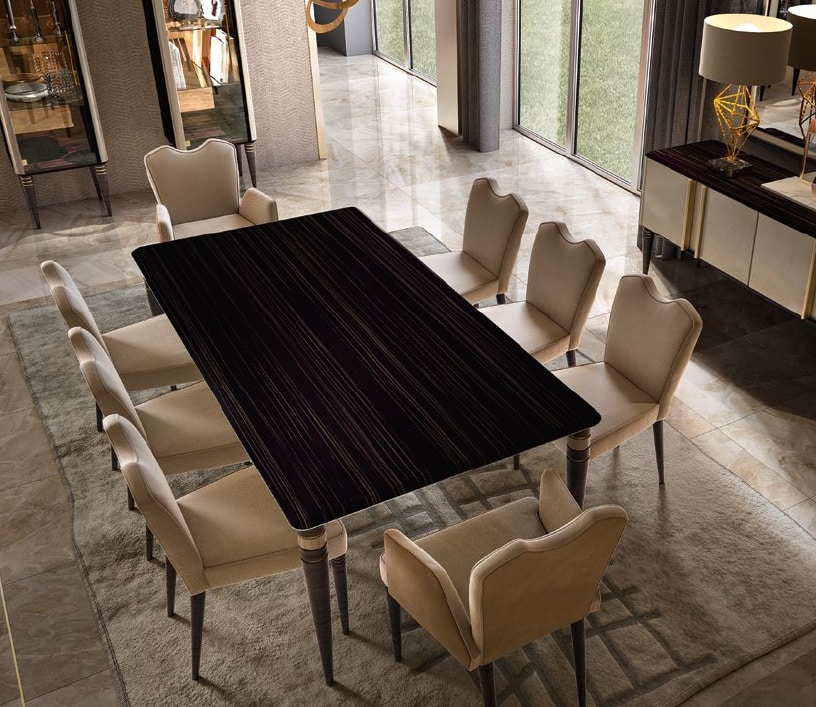 Prestige et charme majestueux. Tout dans la collection Roma parle du raffinement d'une capitale: des détails stylistiques au choix des matériaux, des finitions aux accessoires d'intérieur, des bois tournés aux inserts métalliques, qui ensemble créent une atmosphère d'évocation intemporelle.