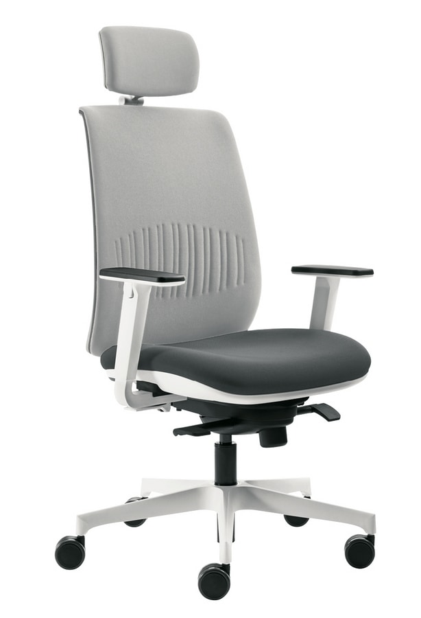 Demander prix Produits similairesSérie opérateur Cobra, proposée avec dossier fixe H 57 cm (à partir de l’assise) qui est suggéré en version RETE (résille) ou bien AIR (dossier équipé d’une membrane composée d’une couche de mousse associée à résille et tissu, tapissé sur les deux faces). Structure du dossier noire (N) ou blanche dite White (réf BI couleur RAL 9010), les deux disponibles avec têtière 2D, quatre type d’accoudoirs (que 2 pour le variante White) et deux mécanismes: le contact permanent PCS4 et le synchro SLY4 avec déplacement vers l’avant de l’assise. Support lombaire CB-ADH réglable de 6 cm en hauteur. Piètement en Nylon Ø 68 cm de couleur noire (N), blanche (BI) pour la version White, ou en aluminium poli (LU). Roulettes Ø 65 mm freinée souple pour sol dur.