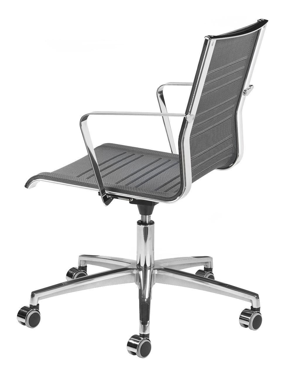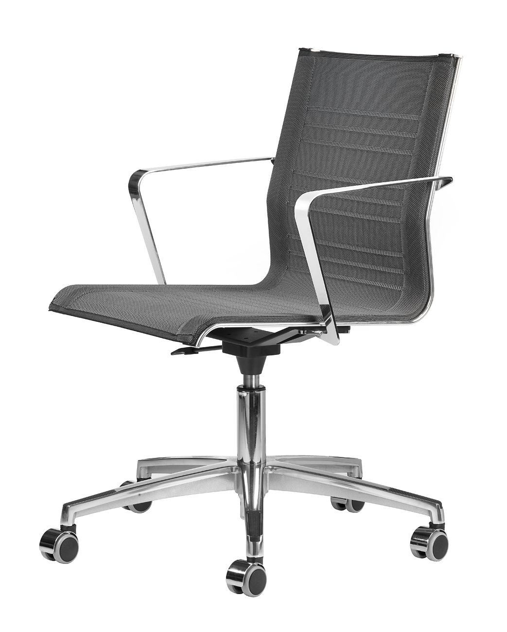 Pietement à 4 ou 5 rayons en aluminium verni ou chromé, regulation hauteur à gas, roulettes ou patins.