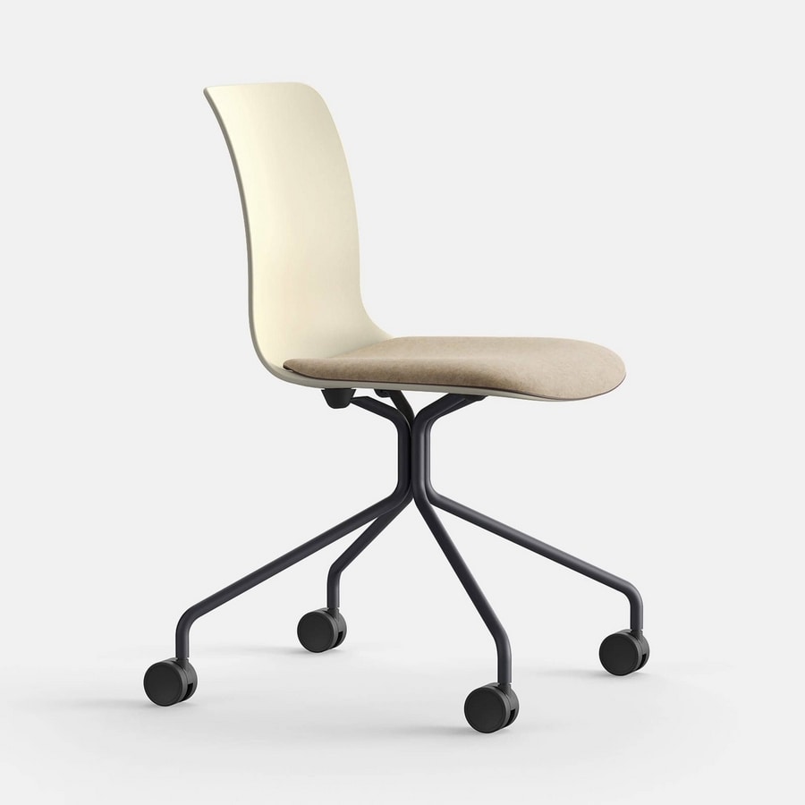 Chaise avec monocoque en polypropylène et piètement à rayons sur roulettes
