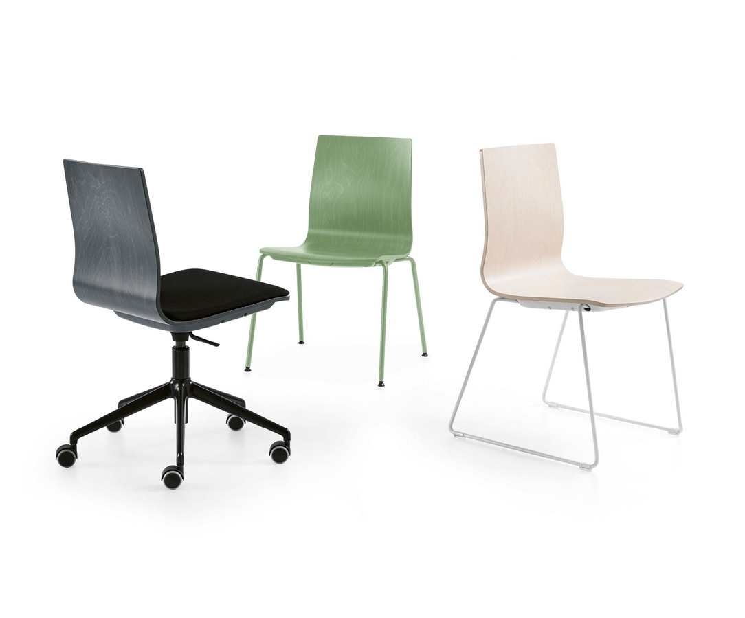 La série Q2 rejoint Q3, complétant et élargissant la gamme de chaises communautaires. La combinaison de l'offre de série est unique car les mêmes versions de coque, finitions et couleurs peuvent être utilisées sur différents cadres. Ce qui distingue Q2, c'est la chaleur du bois utilisé pour la coque qui, accentuée par les couleurs de finition, fait ressortir le grain de ce matériau vivant et éternel, parfait pour les environnements naturels et «verts».