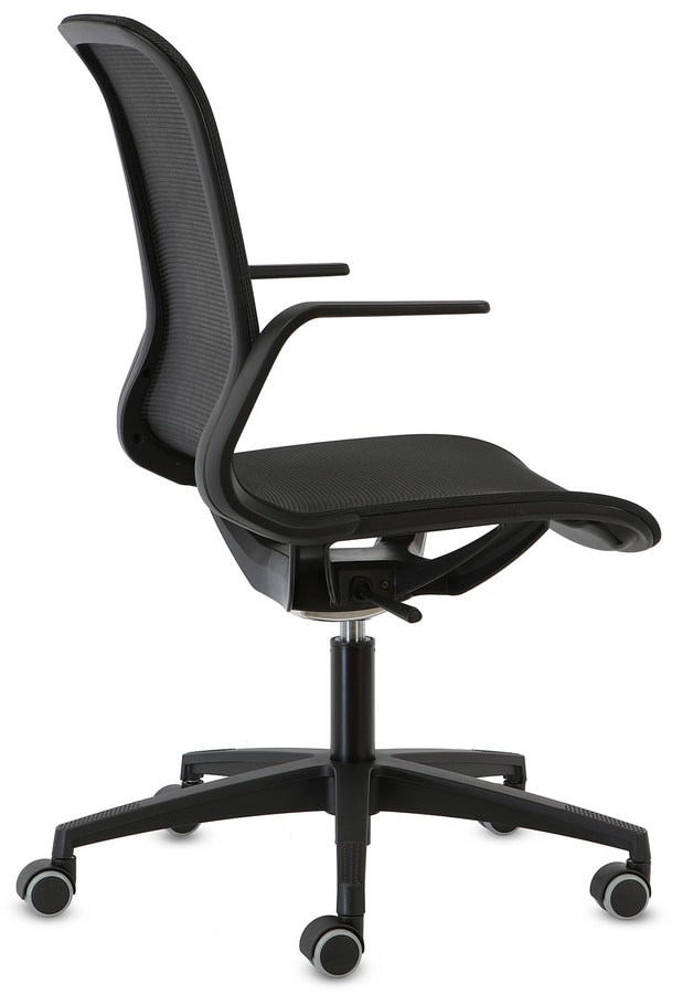 Fauteuil avec coque en maille respirante haute résistance disponible en noir ou gris.