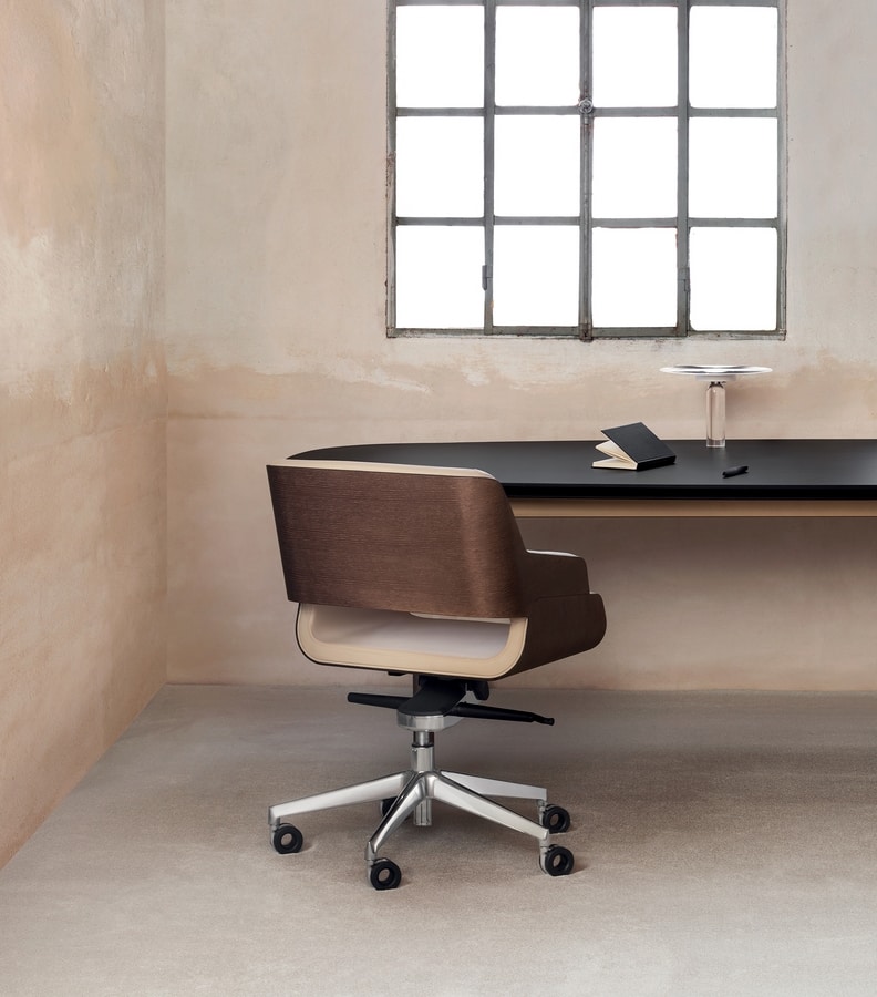 Chaise de bureau, avec dossier en bois, rembourré