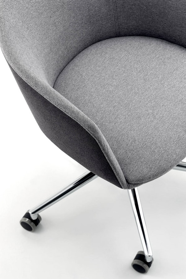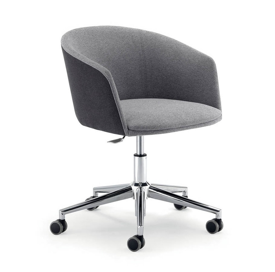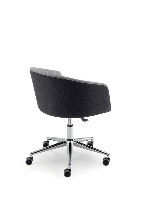 Chaise. Roulettes souples d.50. Base pyramidale chromée d.640. Ascenseur à gaz chromé. Seule plaque de siège à réglage en hauteur. Contreplaqué et structure en acier avec mousse de polyuréthane.