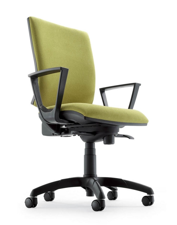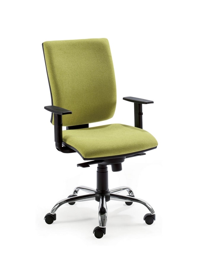 Siège de travail tapissé, avec accoudoirs et base chromée