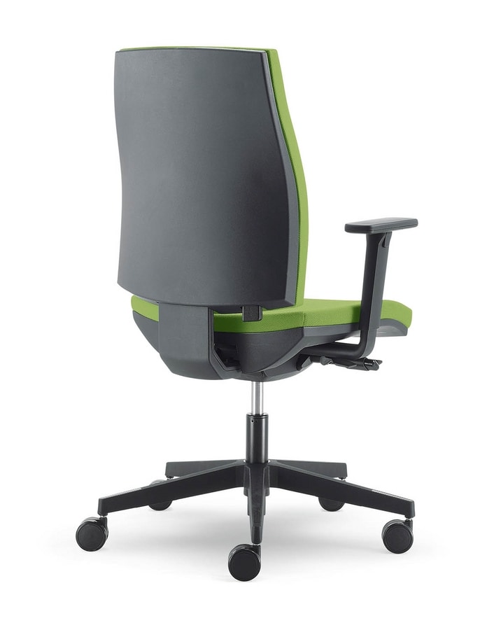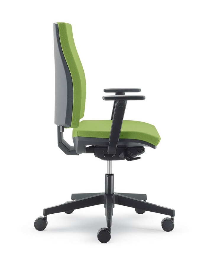 Chaise directionnelle de bureau, avec un rembourrage en mousse à froid et couvert de nylon noir. Silencieux, solide et moderne avec accoudoirs réglables. Equipé de haut en bas syncro mécanisme. Auto-chaise avec des roues, fabriqué en Italie.
