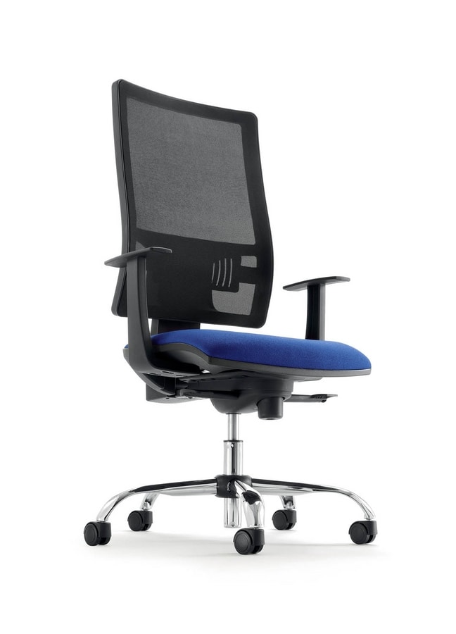 Tâche chaise de bureau avec dossier et roues net sur une base de chrome. Equipé de haut en bas le système et les compensations. chaise souple avec support lombaire, fabriqué en Italie.