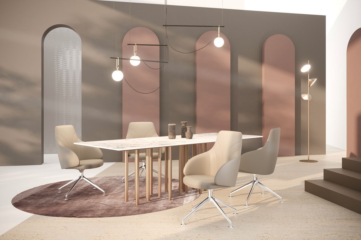 De nombreuses solutions pour aménager les espaces d'attente ou les salles de réunion avec une touche personnelle raffinée. KONTEA peut avoir un dossier lisse ou avec des surpiqures linéaires, à choisir parmi différents types de revêtements, unicolore ou bicolore, en plus des différentes propositions de piètements, fixes ou pivotants.