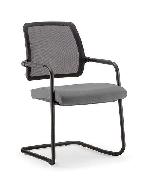 Kos Air est un fauteuil d'invité pour les environnements de travail, les espaces d'attente ou de réunion. En version traîneau, quatre pieds, base fixe pivotante et base à roulettes, il répond à de différentes exigences fonctionnelles et esthétiques. Il est proposé avec un dossier en maille, en noir ou en blanc, et une structure tubulaire chromée ou peinte en noir.