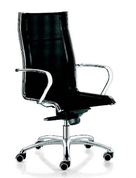 Fauteuil de bureau haut dossier avec structure chromée, assise et dossier en maille UNI-B blanche ou noire avec revêtement amovible pour le siège.