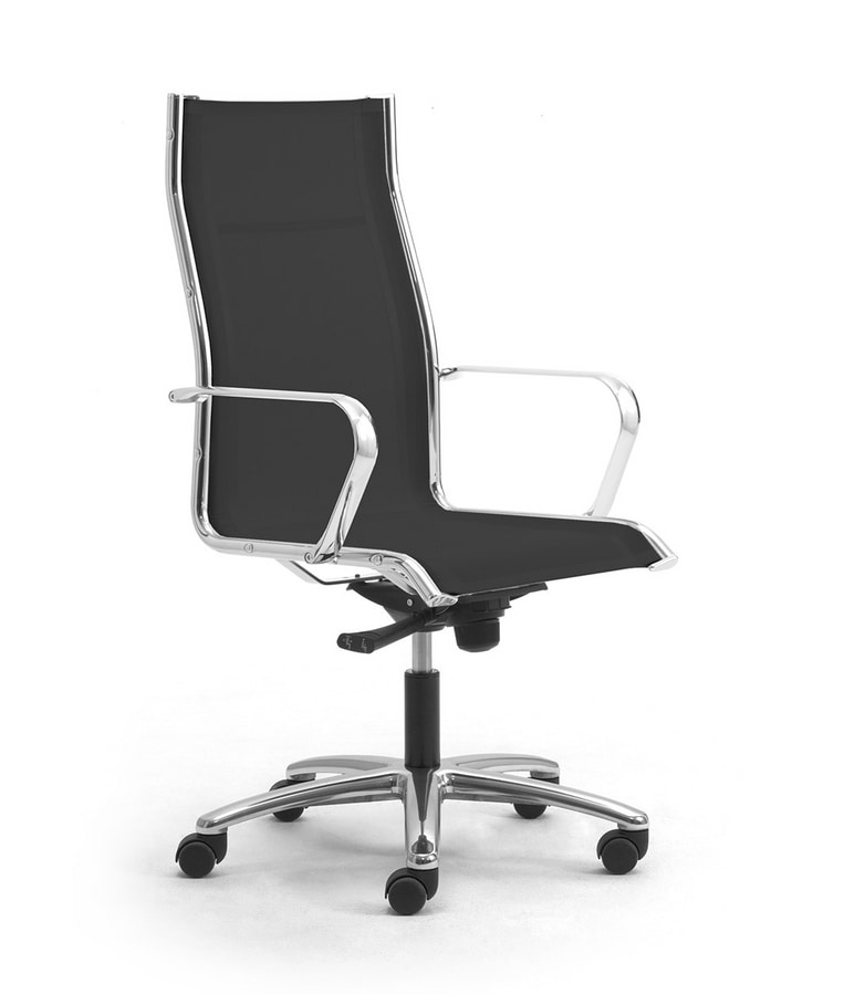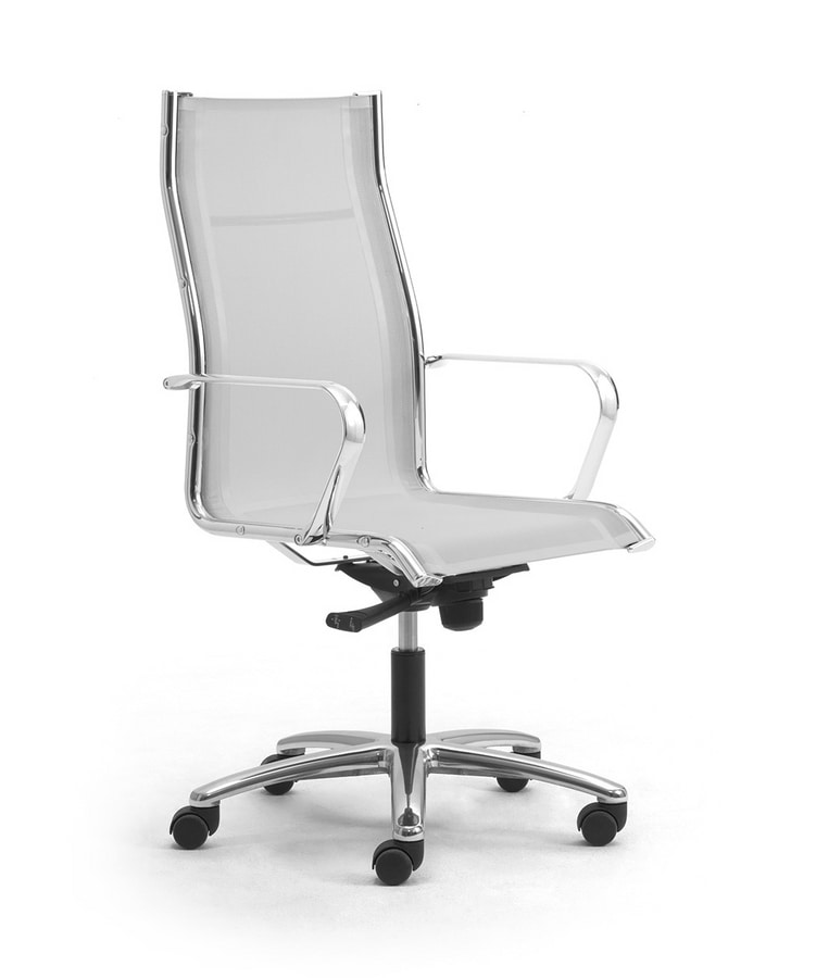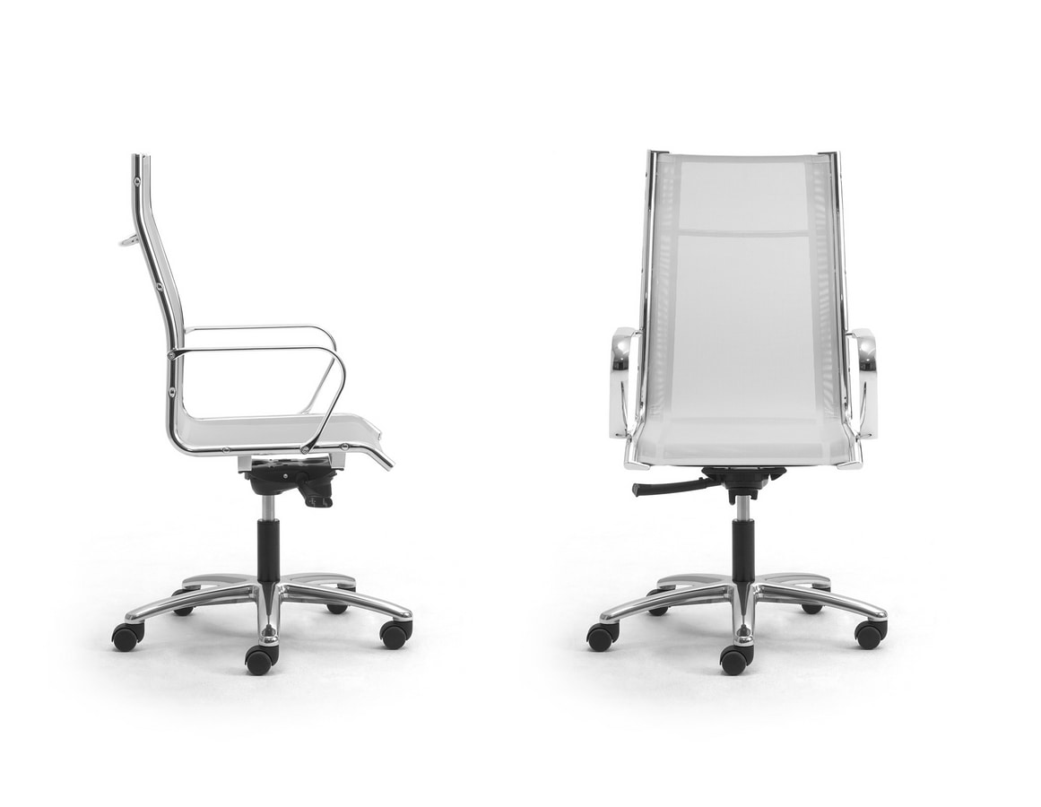 Haute chaise de bureau exécutif dont le siège est nette et le dossier. Est une collection de sièges au design unique qui offre le bon compromis entre fonctionnalité et style. Merci à ces caractéristiques, il s'intègre parfaitement dans les environnements les plus divers tels que exploitation, de bureau professionnel et directionnel ainsi que les espaces de conférence contemporaine. RE ORIGAMI caractérisé par des coussins de couverture Rete "(tissu maille synthétique avec enduction PVC spécial). Mécanisme basculant avec un levier. Réglage de la hauteur à gaz et au genou-incliner le verrouillage en position de fonctionnement ou basculement gratuitement. Contrôle de la tension réglable.