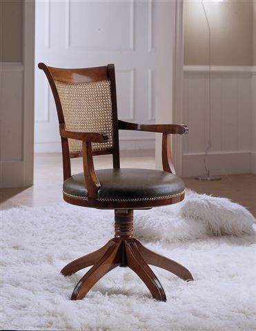 Demander prix Produits similairesChaise pivotante avec dossier en paille de Vienne et assise rembourrée en cuir véritable.