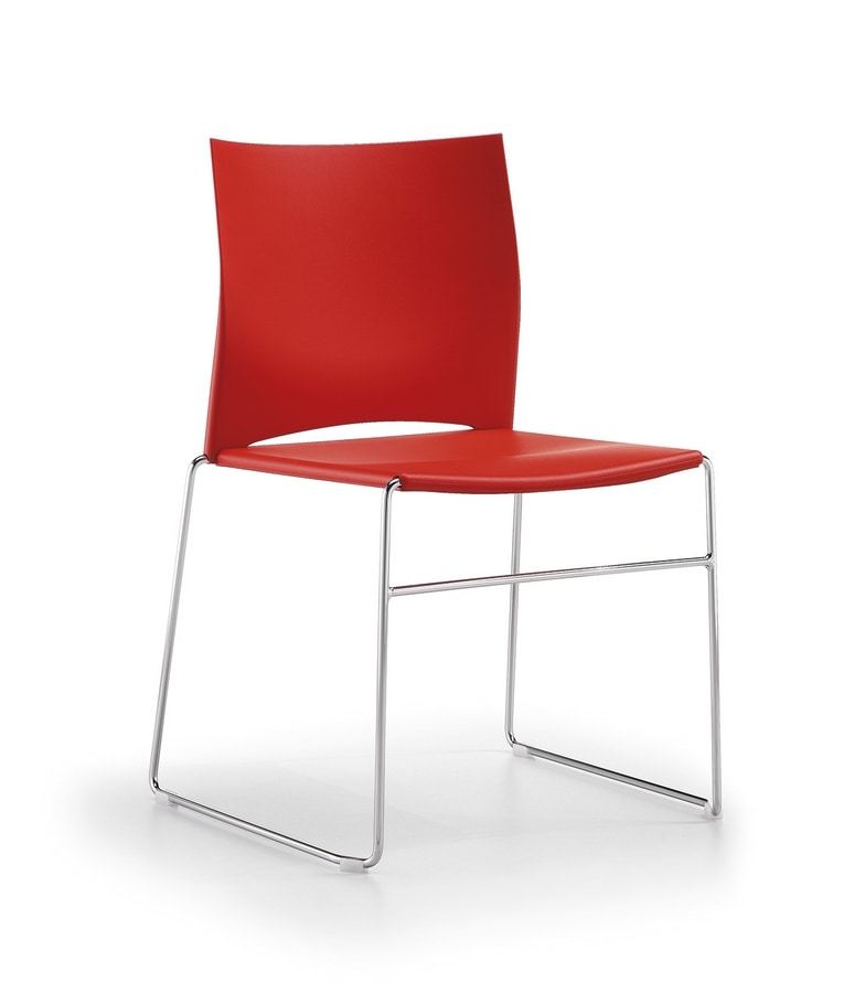 Chaise ergonomique et fonctionnelle. Chaise empilable, avec dossier et assise en plastique disponibles en différentes couleurs.
