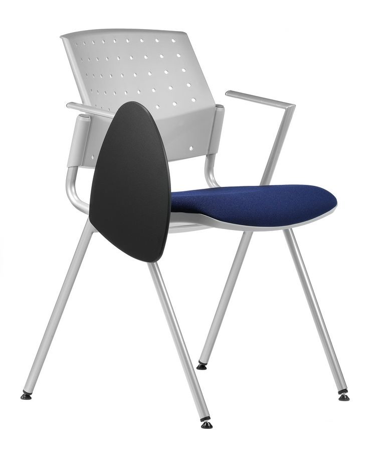 Chaise avec assise rembourrée, base en métal, tablette écritoire