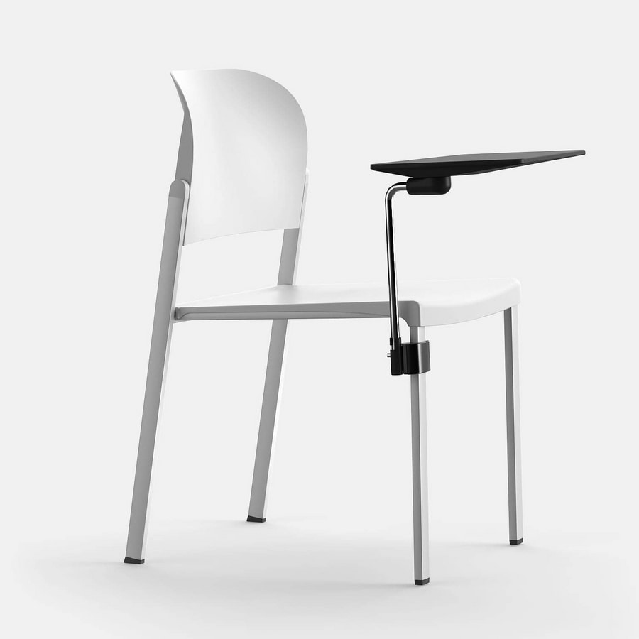Demander prix Produits similairesCertifiée écologique sur demande, la chaise Bio avec tablette écritoire est dotée d’une assise et d’un dossier en polypropylène recyclé. Empilable, elle possède la large assise de toutes les chaises de la même collection. Cette version de Bio se distingue toutefois par sa tablette écritoire antipanique, pratique et amovible, qui offre un support optimal pour la prise de notes. Grâce au système à baïonnette avec articulation en aluminium, une fois la conférence ou le cours terminé, la tablette peut être facilement retirée. Bio peut ainsi être utilisée comme simple siège ou rangée, en l’empilant verticalement. En raison de ces caractéristiques, la chaise Bio avec tablette écritoire est idéale pour meubler les salles de réunion, les espaces de travail partagés et les salles de classe. Personnalisable à travers une variété de couleurs et de finitions, Bio avec tablette écritoire est également proposée avec des accoudoirs. Chez IBEBI, la recherche du confort est étroitement liée à la durabilité. Chaque meuble est conçu en tenant compte de l’environnement qui nous entoure et de l’impact que chaque choix peut avoir sur l’avenir de notre planète. C’est pourquoi la durabilité est considérée comme une évolution naturelle de l’activité de l’entreprise, et non comme une obligation à respecter. La chaise Bio avec tablette écritoire représente une étape importante dans le parcours de notre entreprise vers le respect de l’environnement. Cette chaise est fabriquée sur demande en polypropylène recyclé et certifiée « green » par ReMade in Italy, la première association italienne à but non lucratif qui certifie que les produits respectent l’environnement. La chaise Bio a également passé avec succès les rigoureux contrôles de conformité aux exigences du GPP (Green Public Procurement). En plaçant la durabilité au centre de nos préoccupations, chez IBEBI, nous la considérons comme une valeur essentielle pour notre avenir. La chaise Bio avec tablette écritoire représente donc un choix conscient de bien-être pour les personnes et l’environnement.