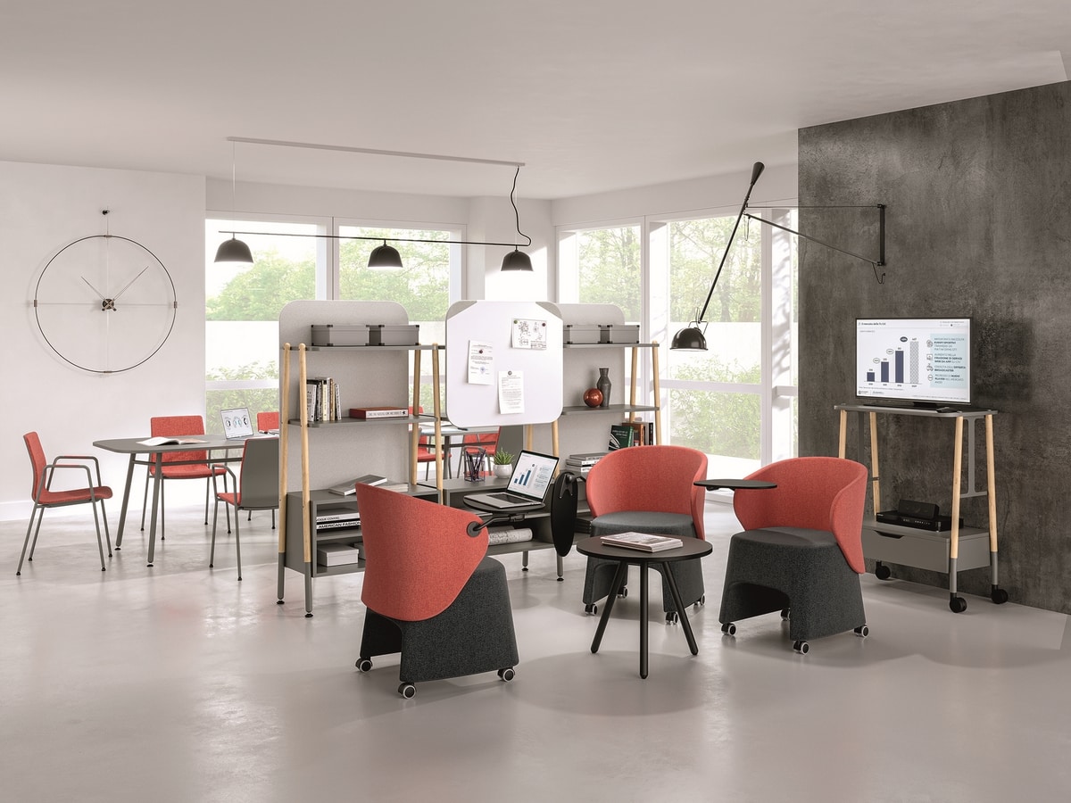 Fauteuil sur roulettes, disponible avec tablette écritoire