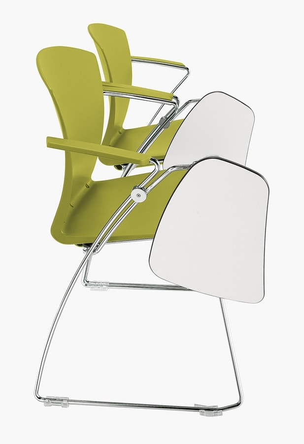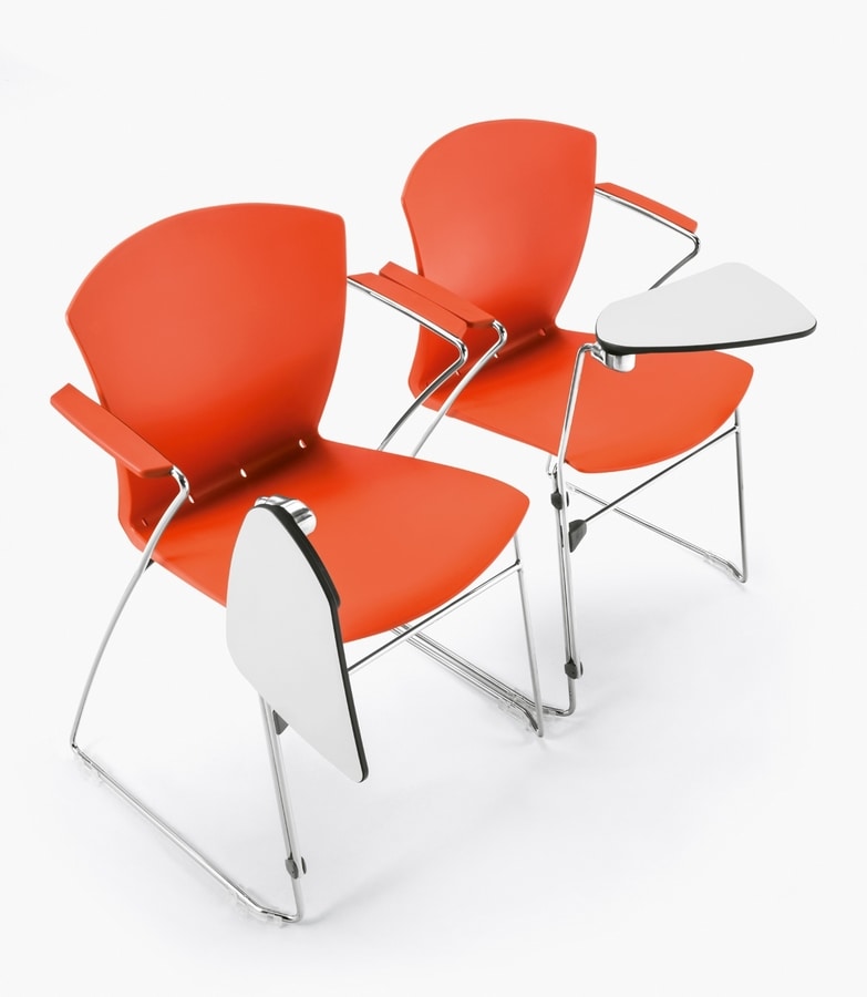 Carina Skid est proposée avec ou sans accoudoirs, dans les 14 couleurs de Carina (compris les appui-bras), dont 8 disponibles en CL1 ITA et 2 en M2 FRA. Il est possible d’appliquer sur l’assise ainsi que sur le dossier un placet tapissé, ou de munir l’assise d’une housse. Pour les deux versions, est disponible une tablette écritoire à accrochage rapide, droite ou gauche, appelée FAST. Les deux versions sont disponibles avec patins de couleur neutre (patins glisseurs pour sols durs), aussi de type « accrochable ». La structure de Carina Skid est réalisée en tube d’acier de Ø 11 mm, disponible avec finition noire (N), chromée (CR) ou en blanc (BI).