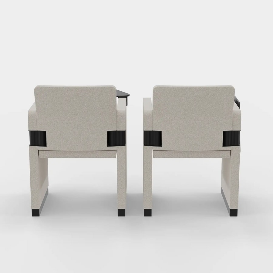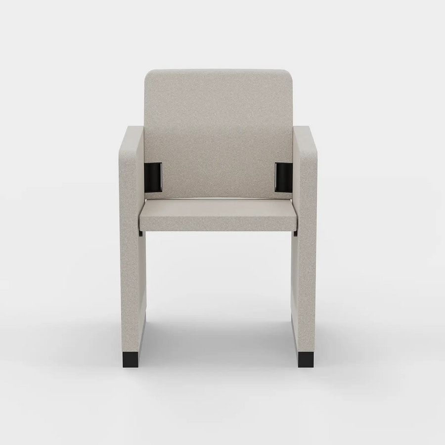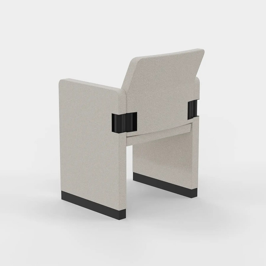 L'assise, le dossier et les accoudoirs ont une structure interne en tube d'acier de différentes sections. À l'intérieur de l'assise et du dossier, les ceintures élastiques assurent un bon confort même lors d'un réglage de longue durée. La chaise est rembourrée d'une mousse de polyuréthane injectée ignifuge densité 45 Kg. par cbm. Le revêtement est disponible en tissu ou en cuir.