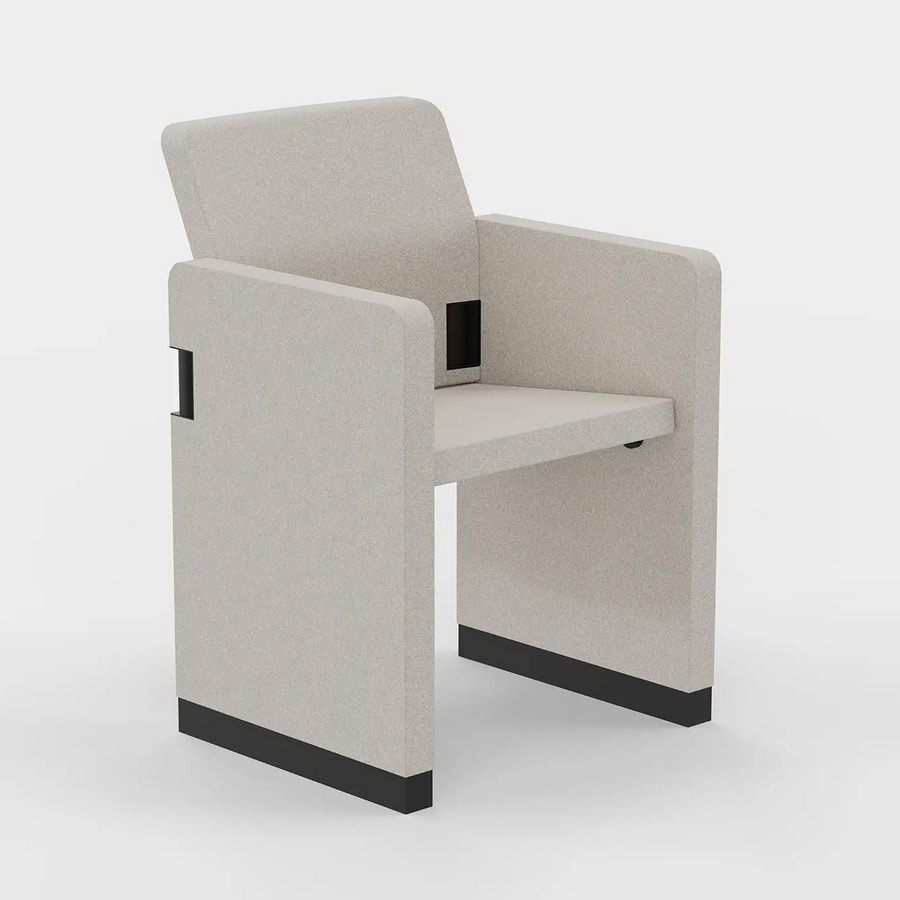 Demander prix Produits similairesDu latin flectere (plier), c’est un fauteuil vraiment magnifique, qui de simple fauteuil pour visiteurs ou salles de réunion, se transforme en un fauteuil large et profond pour les salles de conférences polyfonctionnelles. Le soin des détails, la gamme complète d’accessoires, sa maniabilité, son confort d’assise et surtout sa compacité due à son mécanisme de fermeture, en font un produit vraiment unique et adapté à tous les lieux de standing.