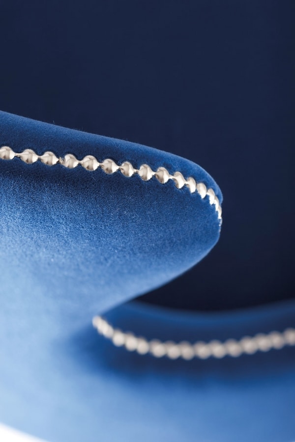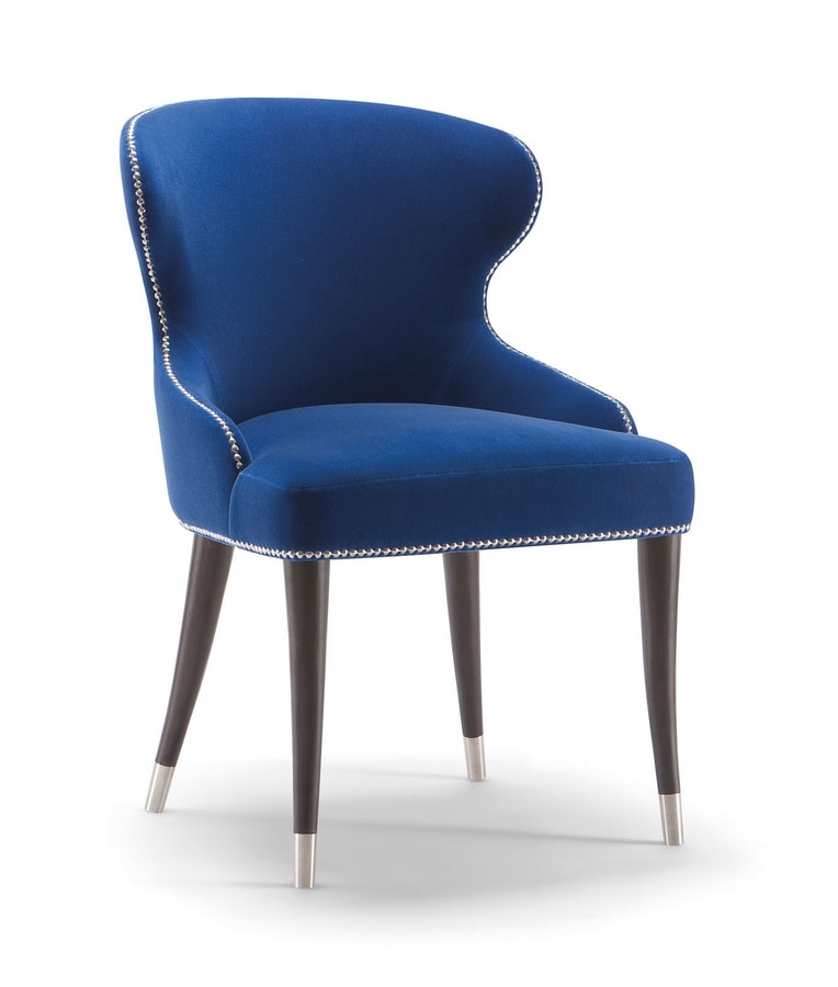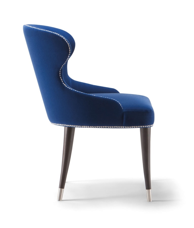La chaise Camelia est traditionnellement fabriquée en bois de hêtre massif, garantissant sa valeur pour les restaurants, les bars et les grands hôtels. Les finitions en métal chromé ajoutent une touche supplémentaire d'allure glamour à cette collection, créée avec un goût de mode. Grâce à la large gamme de tissus, de capuchons métalliques, de clous et de teinture pour bois, ce produit peut parfaitement s'agencer avec n'importe quel espace intérieur.