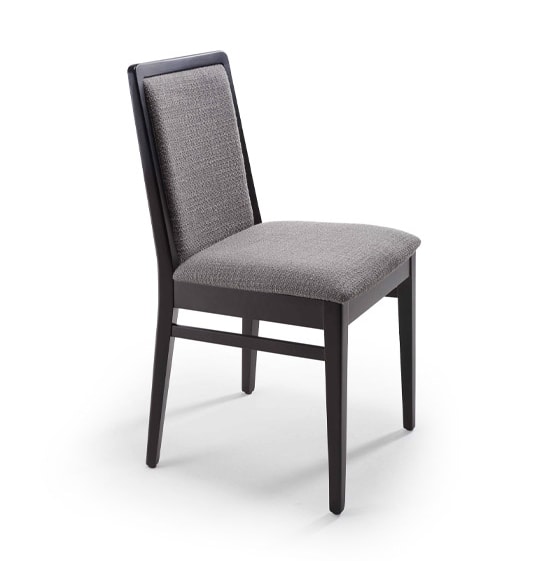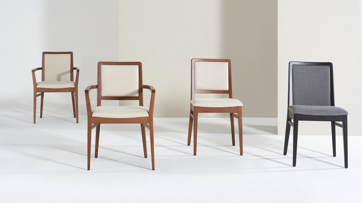 Chaise en bois avec assise et dossier rembourrés. Chaise à la ligne classique, idéale pour tous les environnements.
