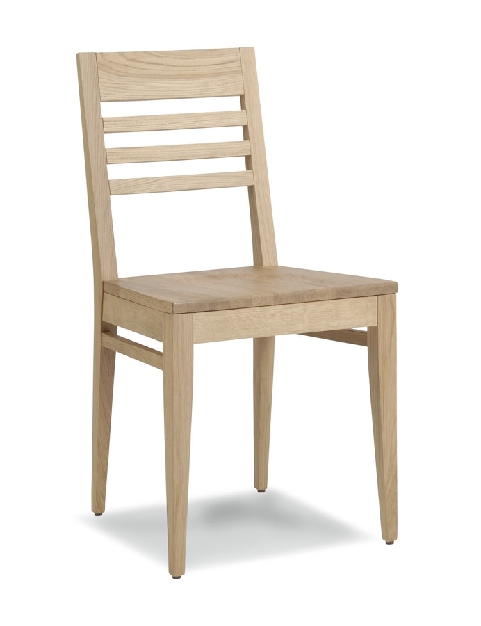 Chaise en bois de chêne avec siège en bois massif, adapté aux environnements contractuels et résidentiels. Également disponible avec un siège rembourré.